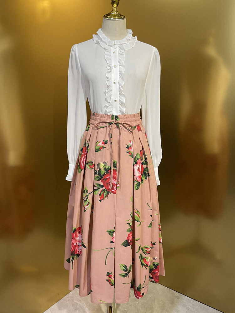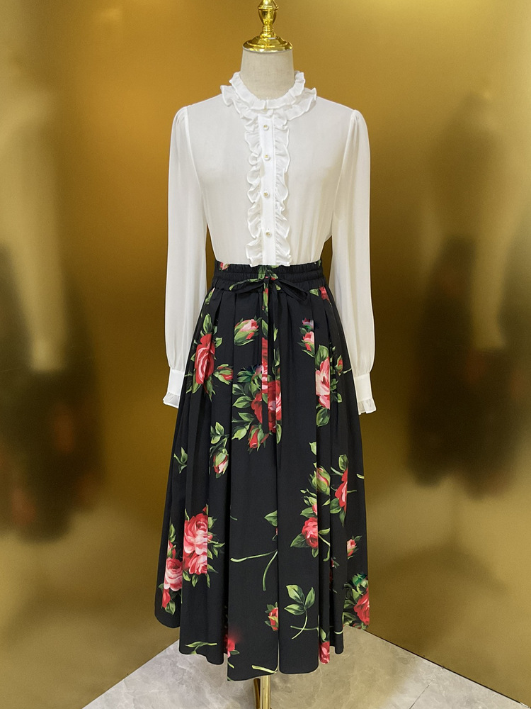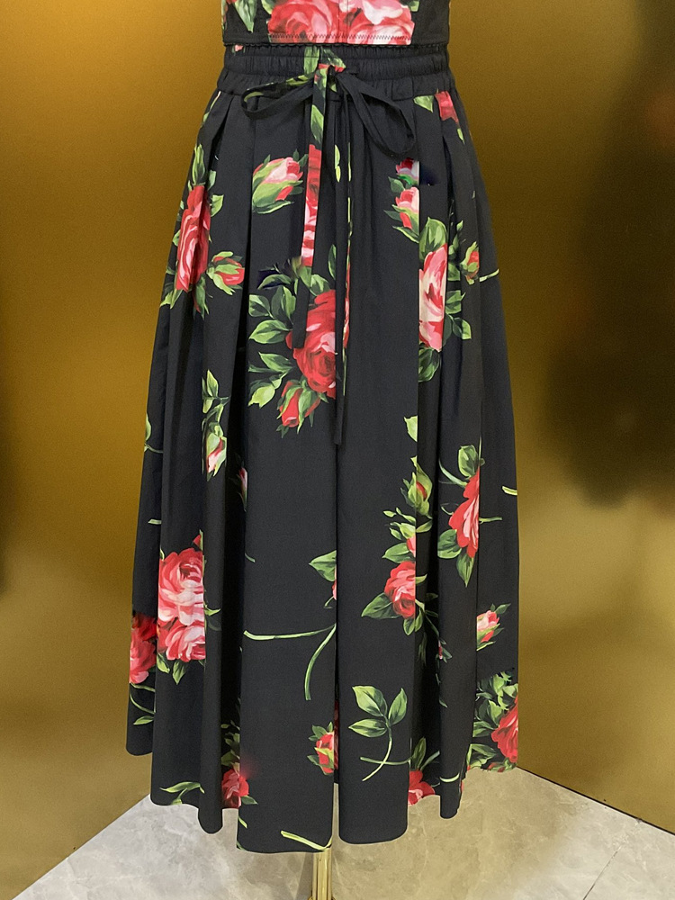 Features: A-line silhouette, elastic high waist, 3D/embossed floral print, midi length, slight stretch, suitable for casual outings, shopping, daily wear, and dates